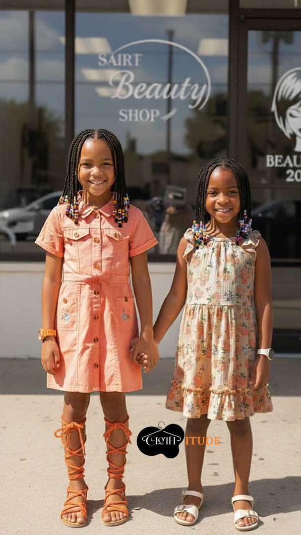 Description – A 2 pack dress that contains a short sleeve jean material gown with collar and a multicolor floral design shoulder sleeves gown